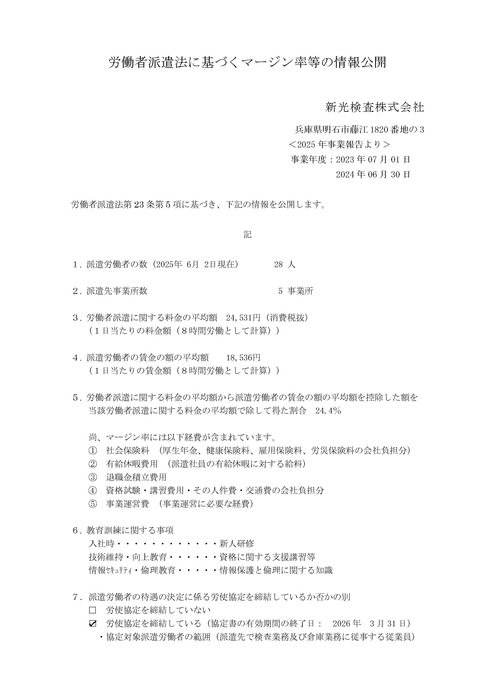 派遣情報公開書